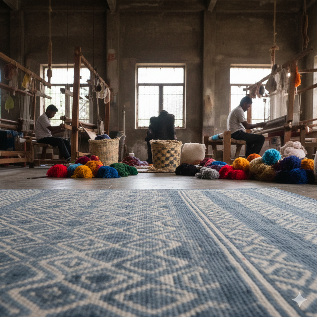 Dash and Albert rugs are made in India. Skillful artisans handcraft every single rug from scratch to the final product through traditional practices.